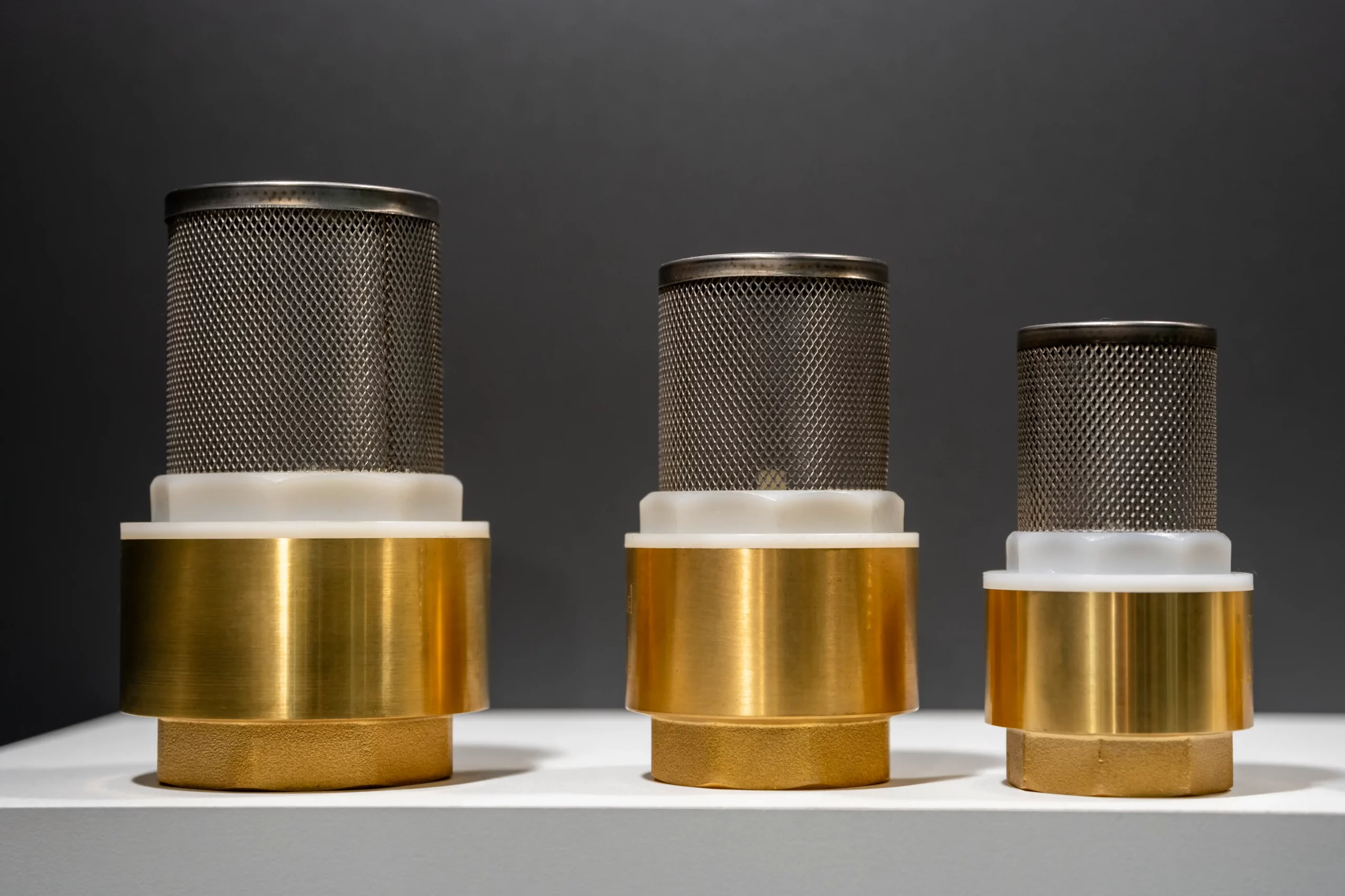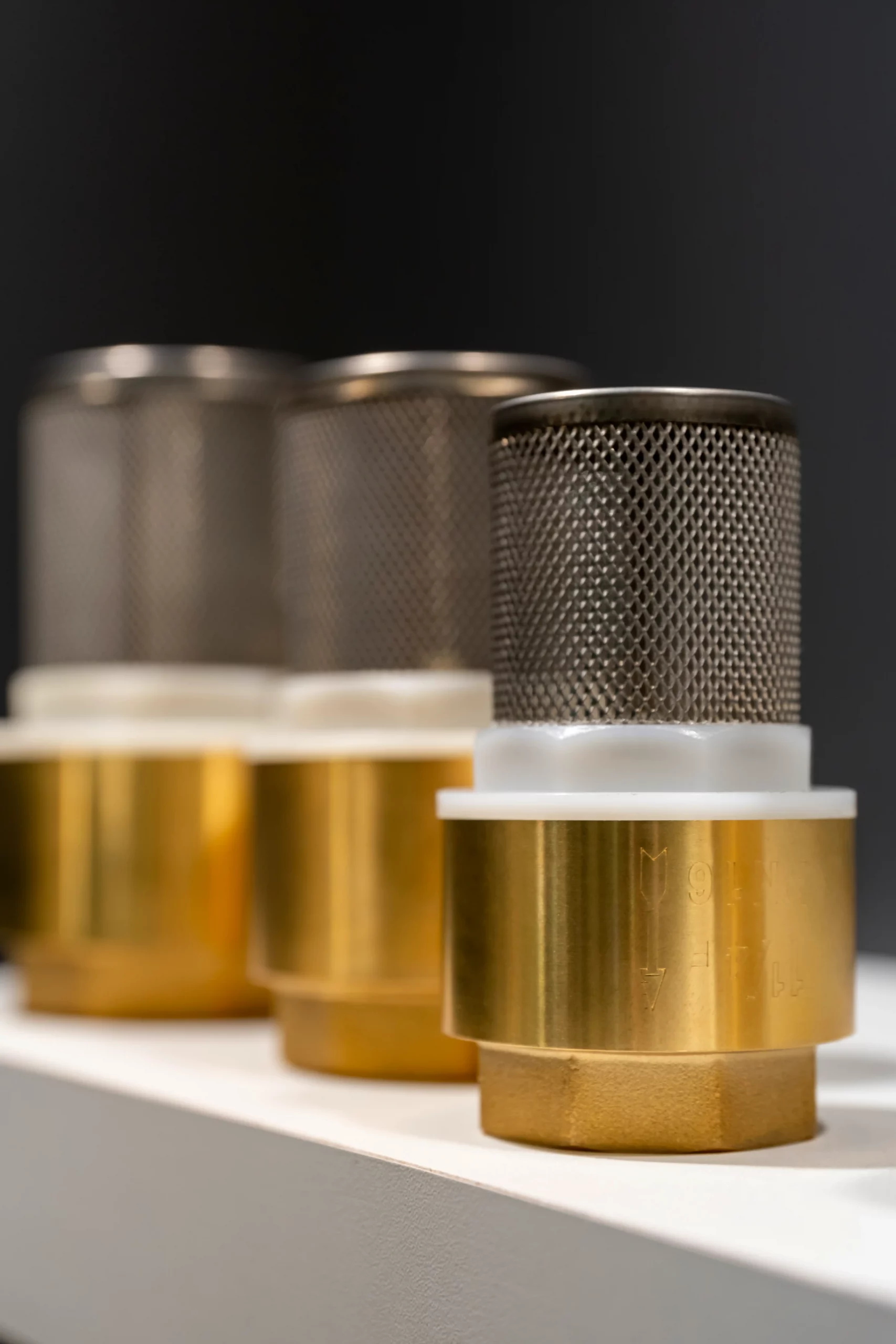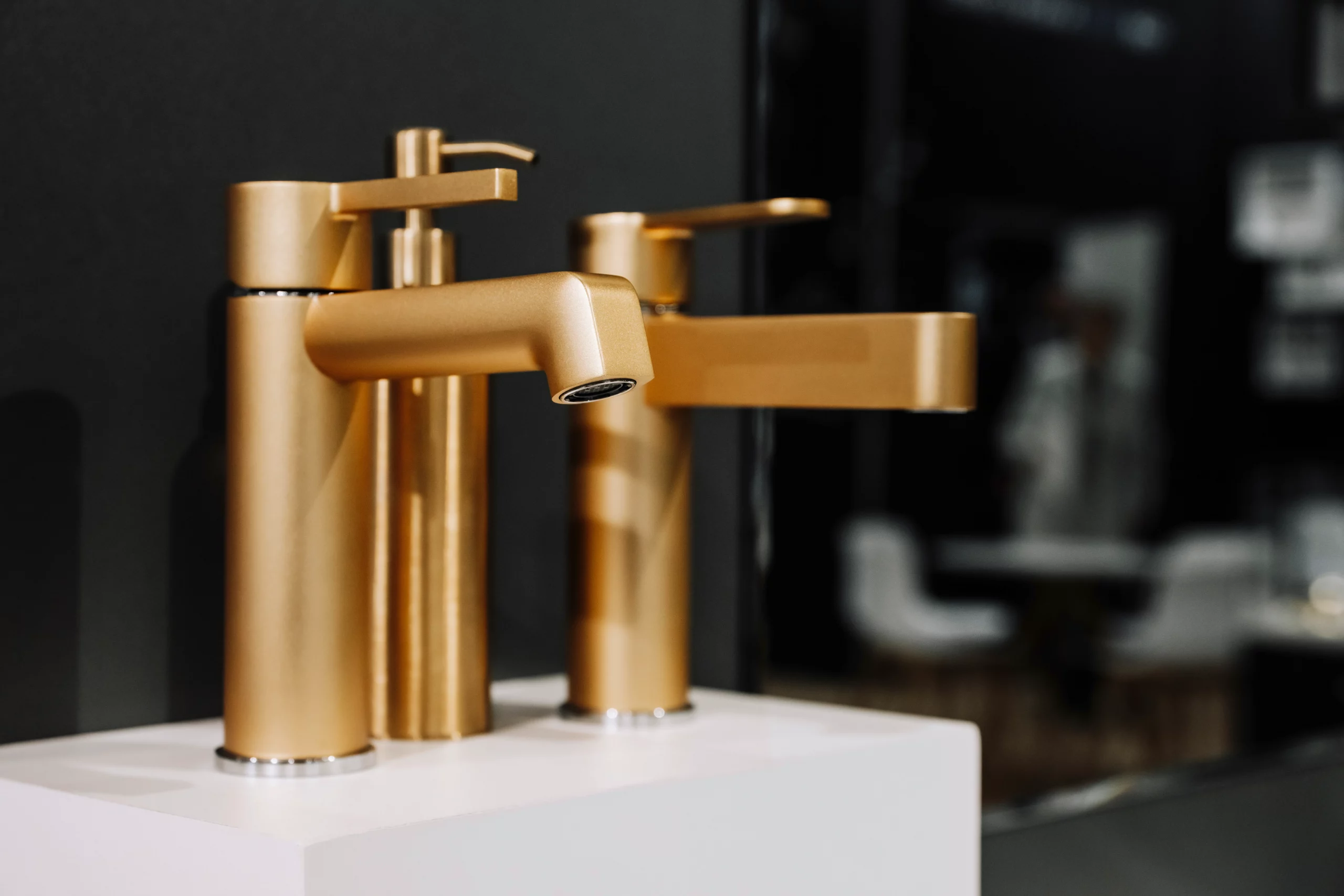Nahaufnahme von zwei gelben Wasserhähnen, montiert auf einer weißen Kiste.