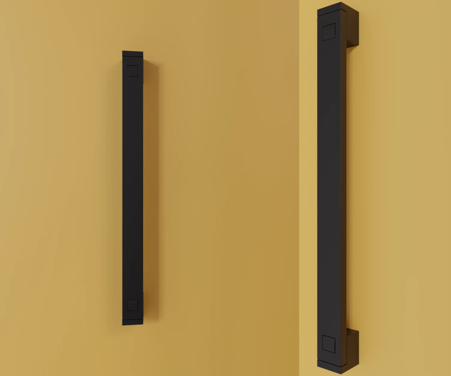 Dieser Griff setzt auf kompromisslose Geradlinigkeit. Mit seiner klaren, rechteckigen Form und den dezent eingefassten Schraubelementen vermittelt er Stabilität und Funktionalität – perfekt für puristische Raumkonzepte mit technischer Anmutung.