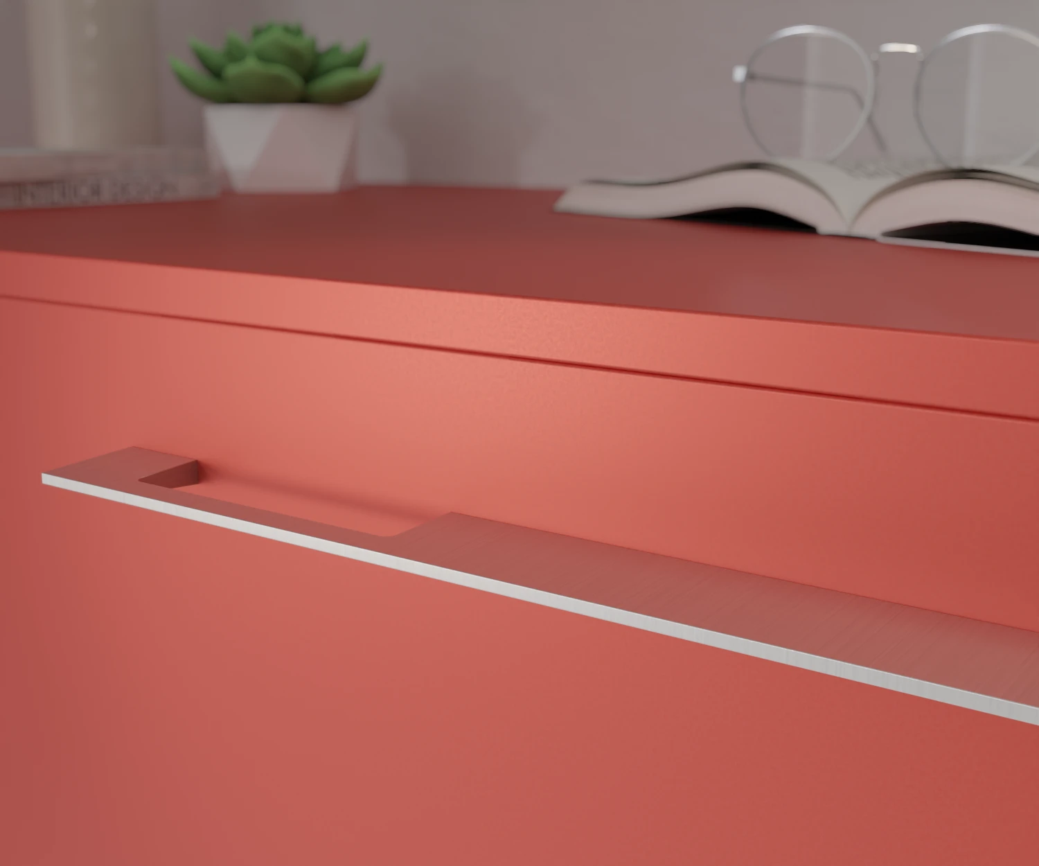 Dieser Griff besticht durch seine asymmetrische Linienführung und das stilvoll versetzte Design. Die matte Oberfläche aus Aluminium unterstreicht die moderne Formsprache und verleiht Möbelstücken eine individuelle, architektonisch inspirierte Note. Ideal für alle, die das Besondere suchen.