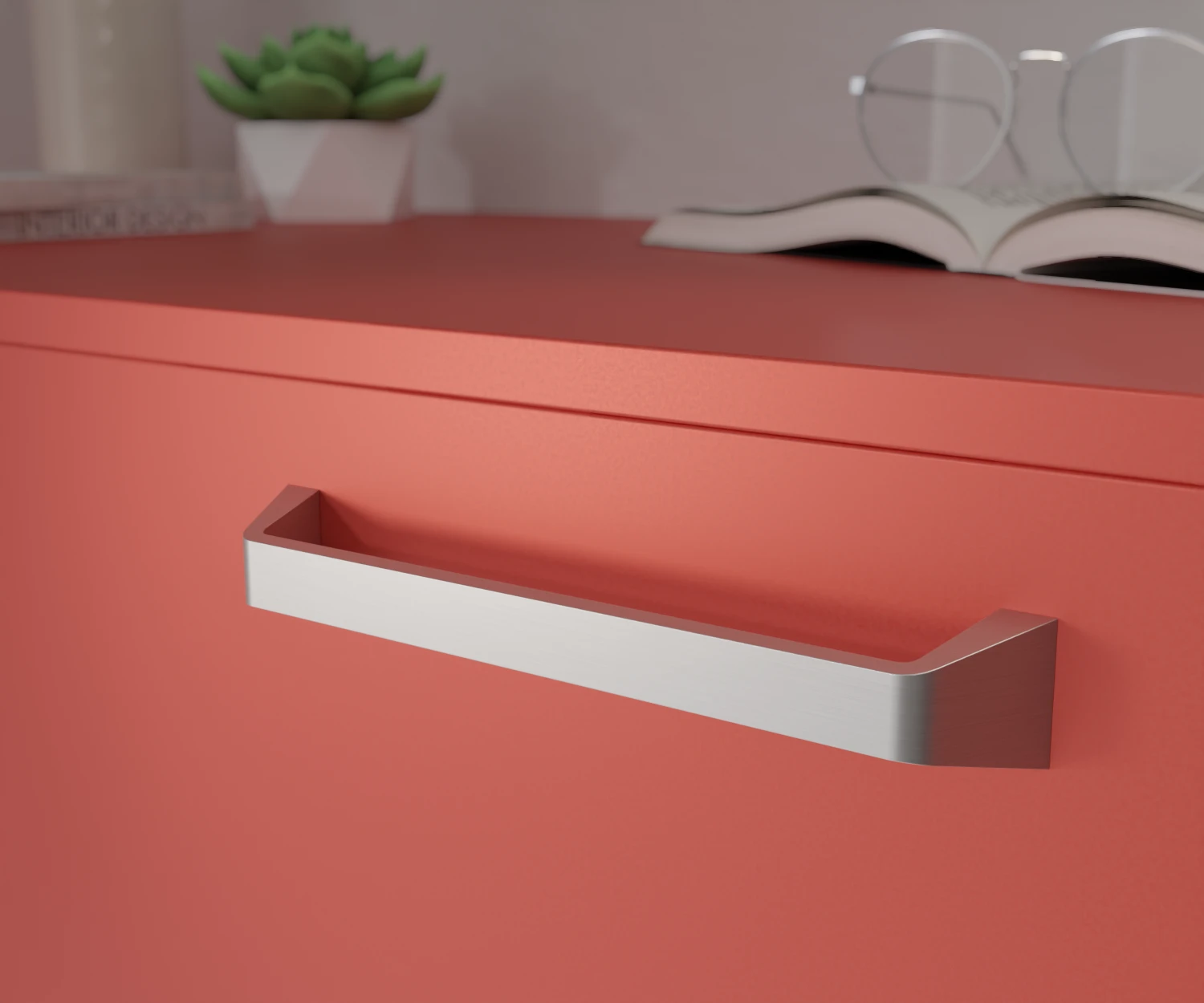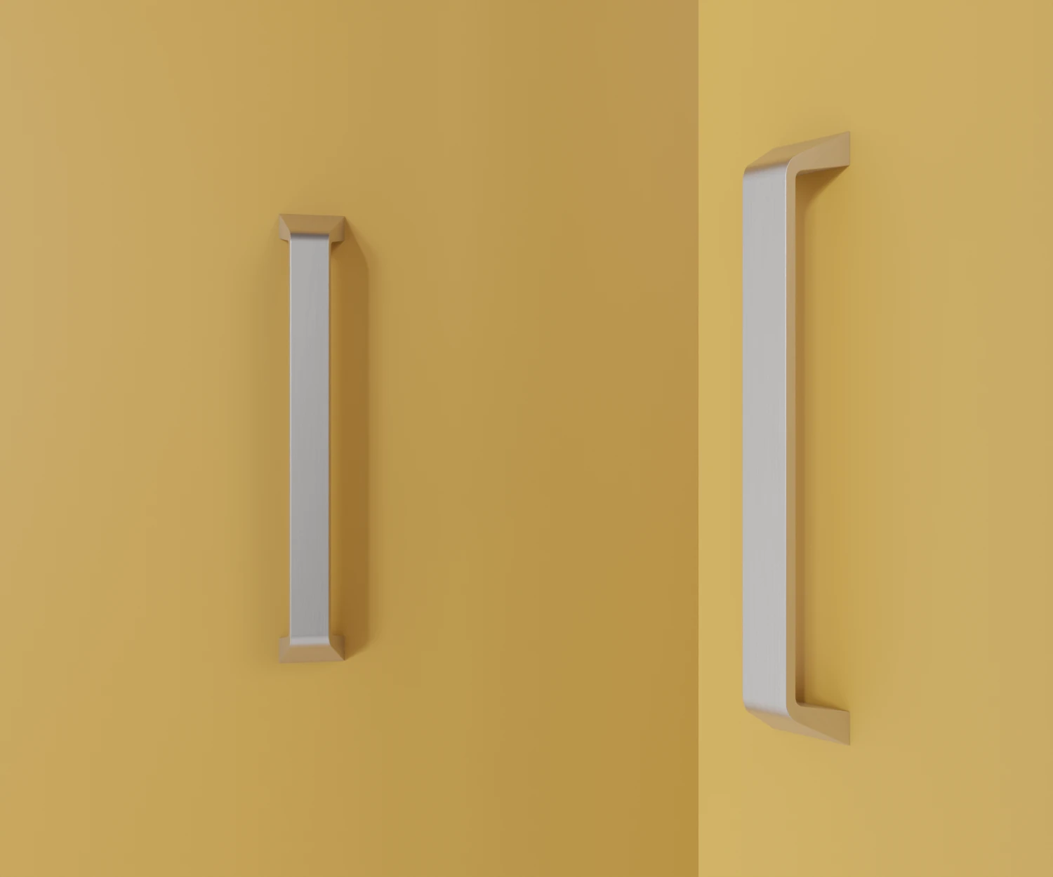 Dieser Griff besticht durch seine feingliedrige Silhouette und die leicht nach außen geneigten Füße. Das schlanke Design verleiht Möbeln eine moderne Leichtigkeit und wirkt besonders elegant auf glatten Flächen. Ideal für alle, die dezente Akzente mit einem Hauch Dynamik setzen möchten.