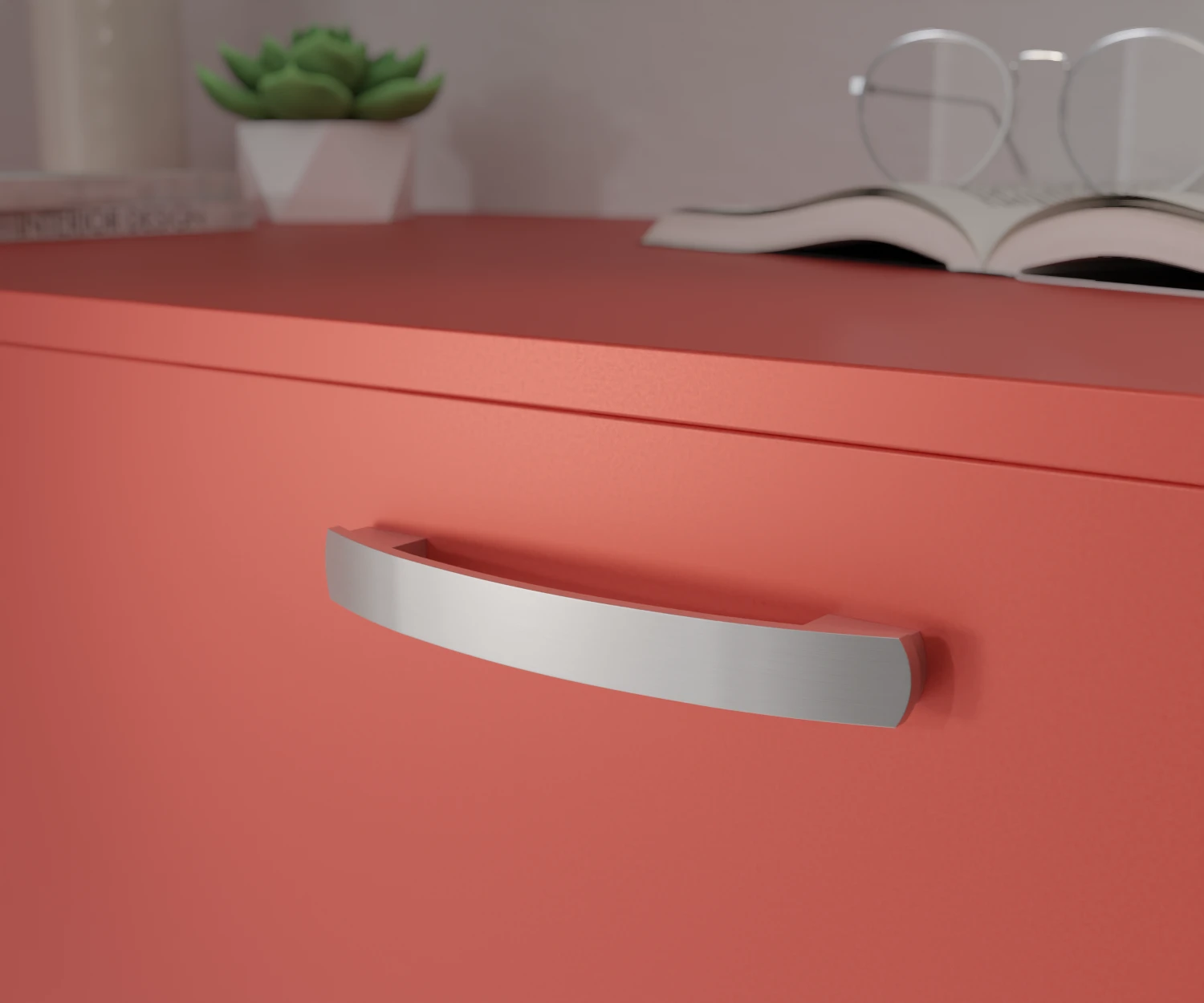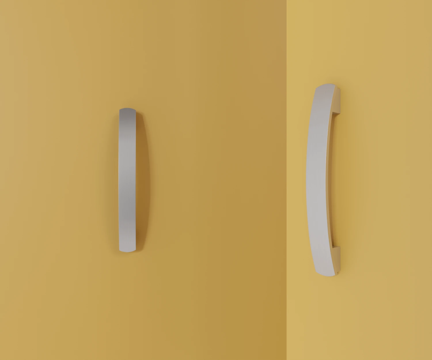 Mit seiner leicht gewölbten Front und den weich ausgeformten Seitenflächen bietet dieser Griff nicht nur optische Harmonie, sondern auch höchsten Bedienkomfort. Die geschwungene Form wirkt einladend und fügt sich besonders gut in wohnliche, moderne Küchen- und Möbeldesigns ein.