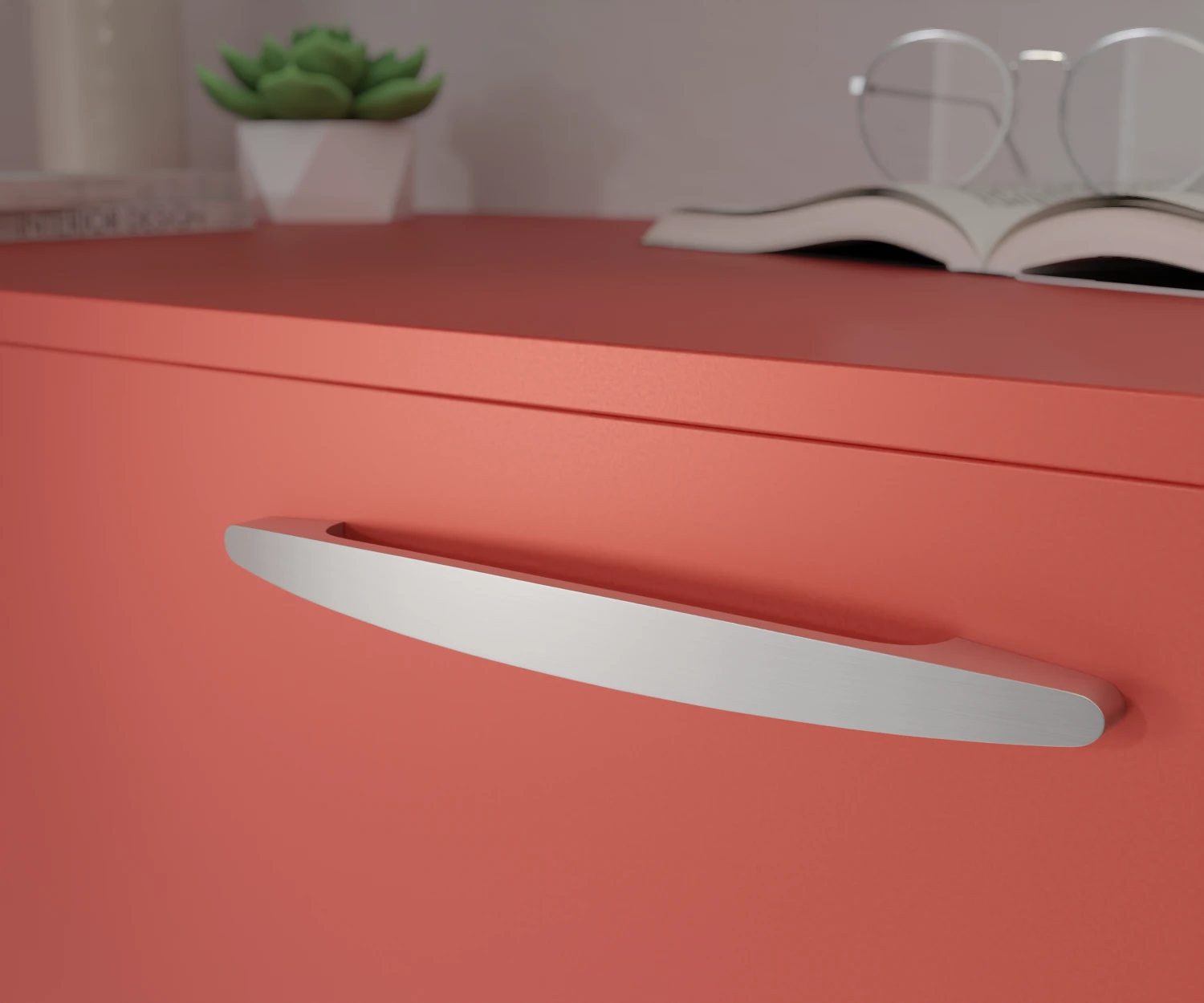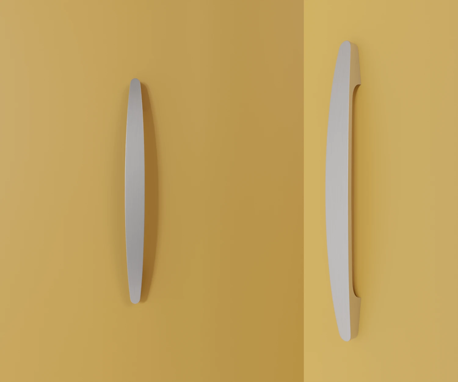 Dieser Griff überzeugt mit einer leichten Bogenform und sanft modellierten Enden. Die klare Linienführung und das ergonomische Design machen ihn zur perfekten Wahl für stilvolle Einrichtungen mit einem Hauch sportlicher Eleganz. Ideal für alle, die Funktionalität und Design mit einem modernen Twist verbinden möchten.