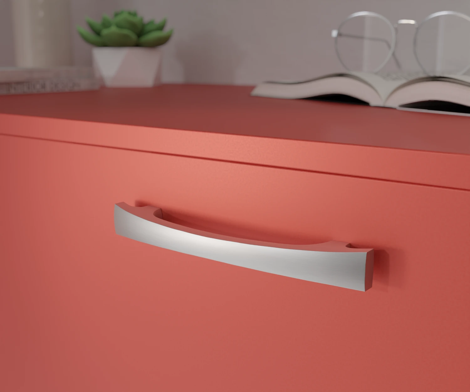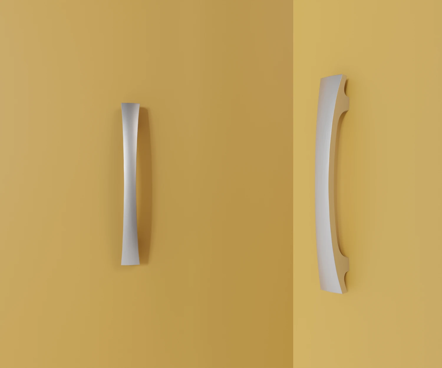 Die leicht geschwungene Front mit dezentem Ausschnitt verleiht diesem Griff eine dynamische, moderne Note. Seine markante Form bietet nicht nur optische Raffinesse, sondern sorgt auch für eine besonders angenehme Haptik – ideal für stilvolle Möbel mit praktischer Eleganz.