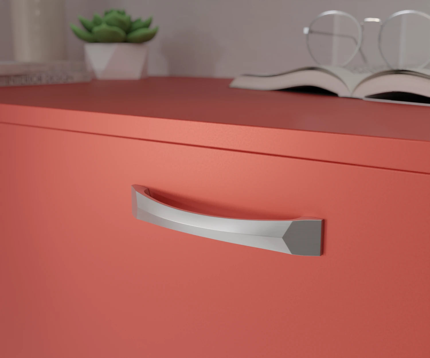 Mit seiner markanten, facettierten Form bringt dieser Griff Dynamik und Charakter in jede Möbelfront. Die schräg zulaufenden Kanten erzeugen spannende Lichtreflexe und betonen das moderne Design. Perfekt für alle, die Ecken und Kanten zeigen möchten – ohne auf Eleganz zu verzichten.
