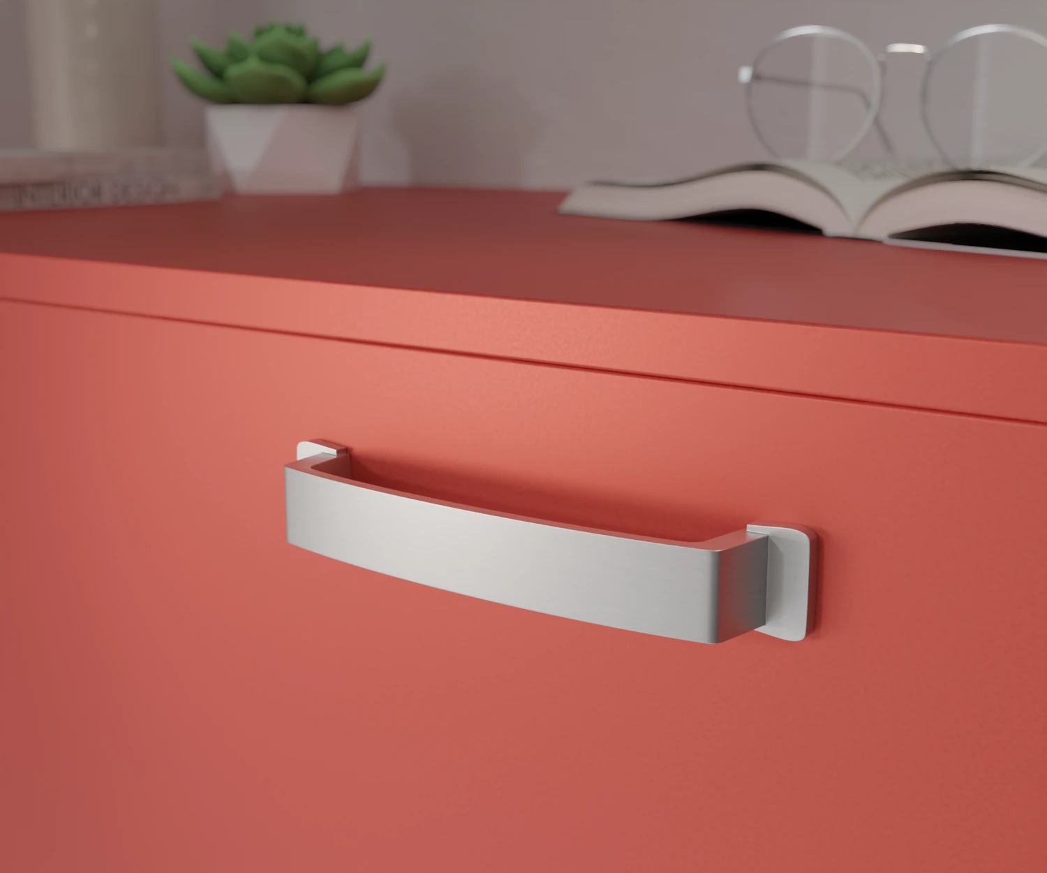 Dieser Griff überzeugt durch seine klare Linienführung und die massive, leicht gebogene Front. Die breiten Enden verleihen ihm Stabilität und Präsenz – ideal für moderne Küchen, Werkstätten oder industrielle Möbeldesigns. Die gebürstete Oberfläche unterstreicht den hochwertigen, technischen Look und sorgt für eine angenehme Haptik.