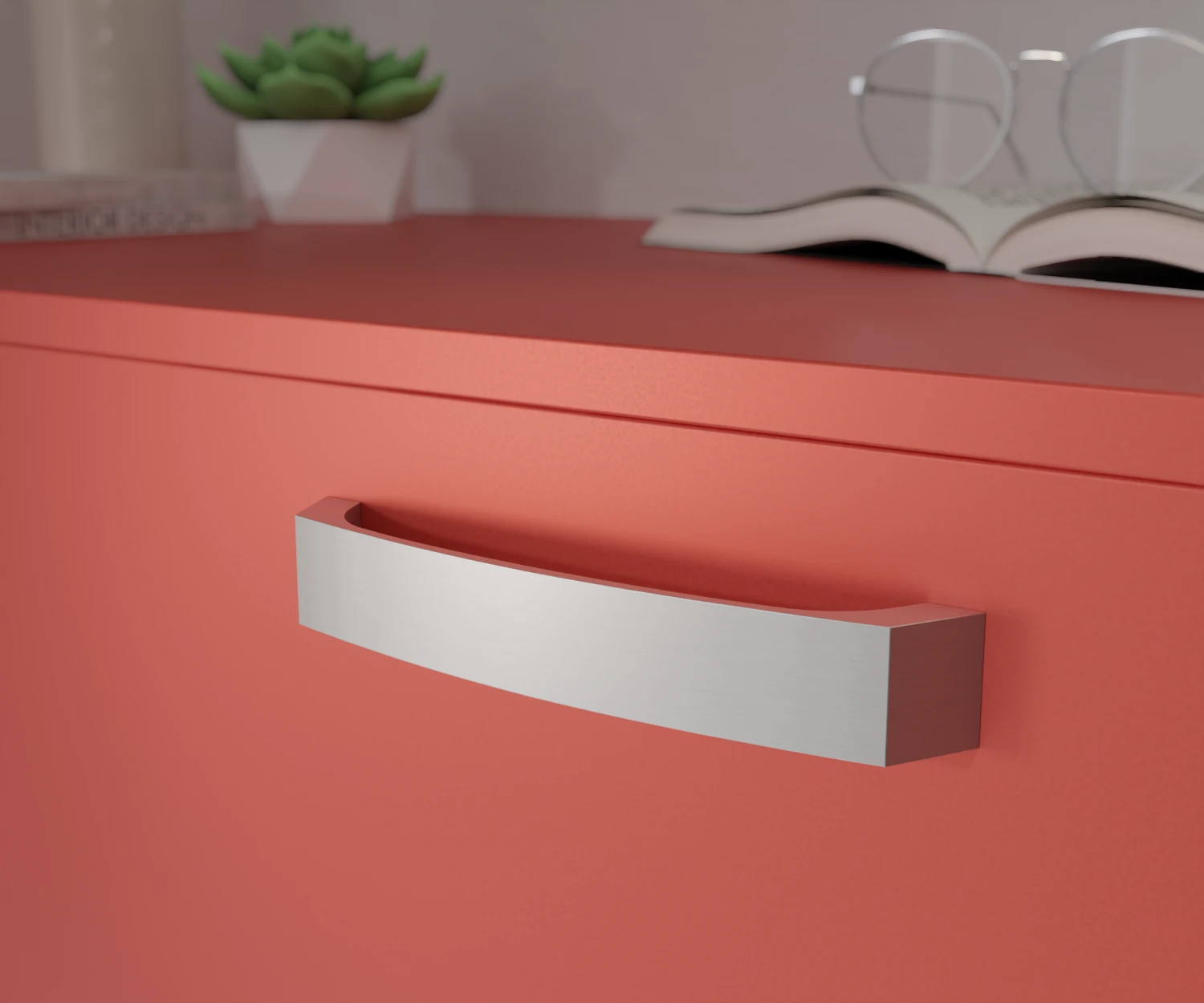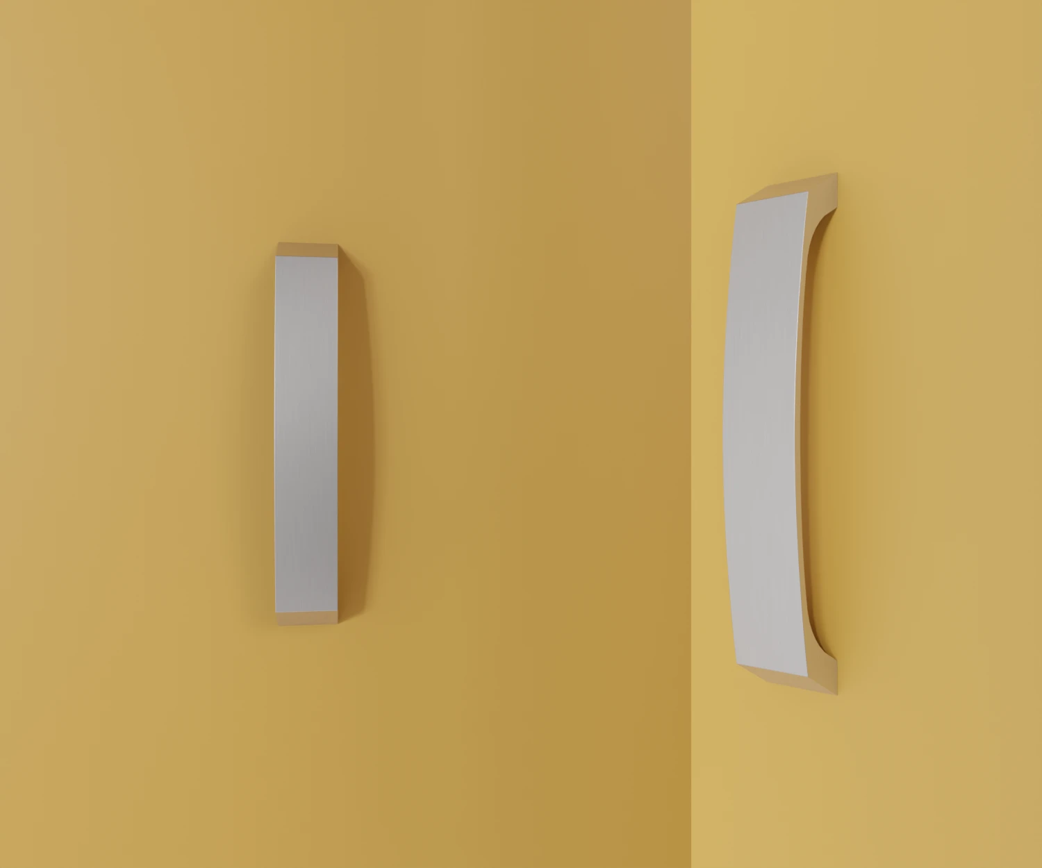 Dieser Griff vereint klare Linien mit einer subtil geschwungenen Frontfläche, die ihm eine kraftvolle, aber dennoch elegante Ausstrahlung verleiht. Die leicht konvexe Form betont die horizontale Linienführung und fügt sich harmonisch in moderne Möbelfronten ein. Ein Designstatement für alle, die Wert auf reduzierte Formensprache mit starker Präsenz legen.