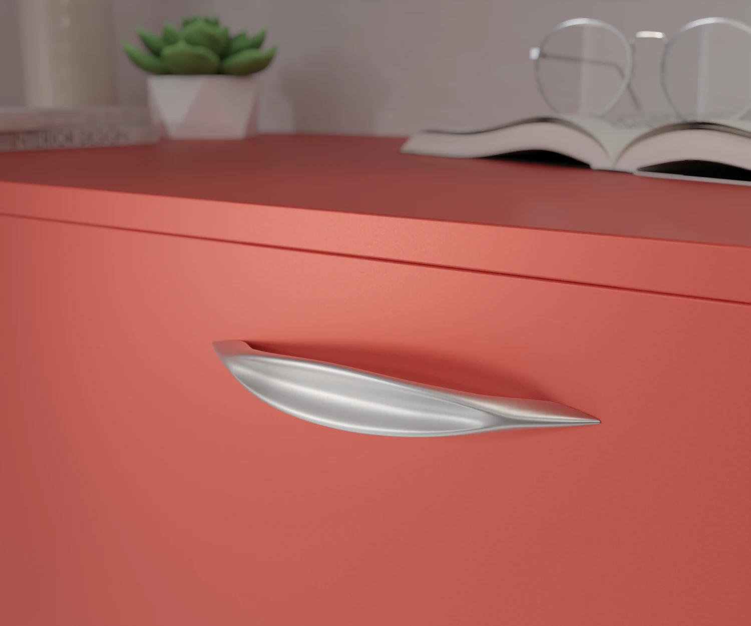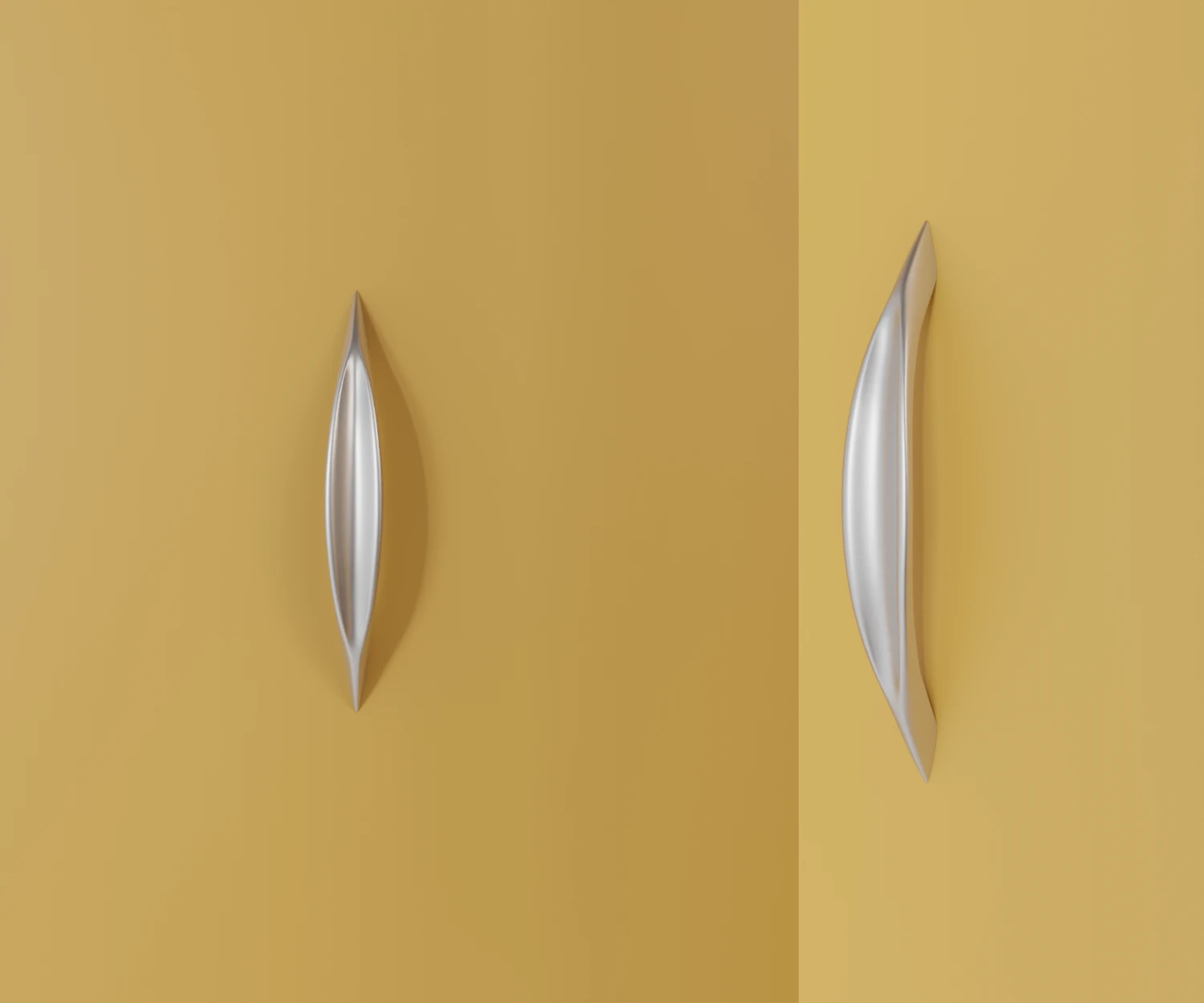 Dieser Griff erinnert in seiner organisch geschwungenen Form an ein gefaltetes Blatt oder eine elegant geschliffene Muschel. Weiche Übergänge und feine Linien verleihen ihm eine natürliche Leichtigkeit und gleichzeitig eine außergewöhnliche Ästhetik. Für alle, die Funktion mit kunstvollem Design verbinden möchten.
