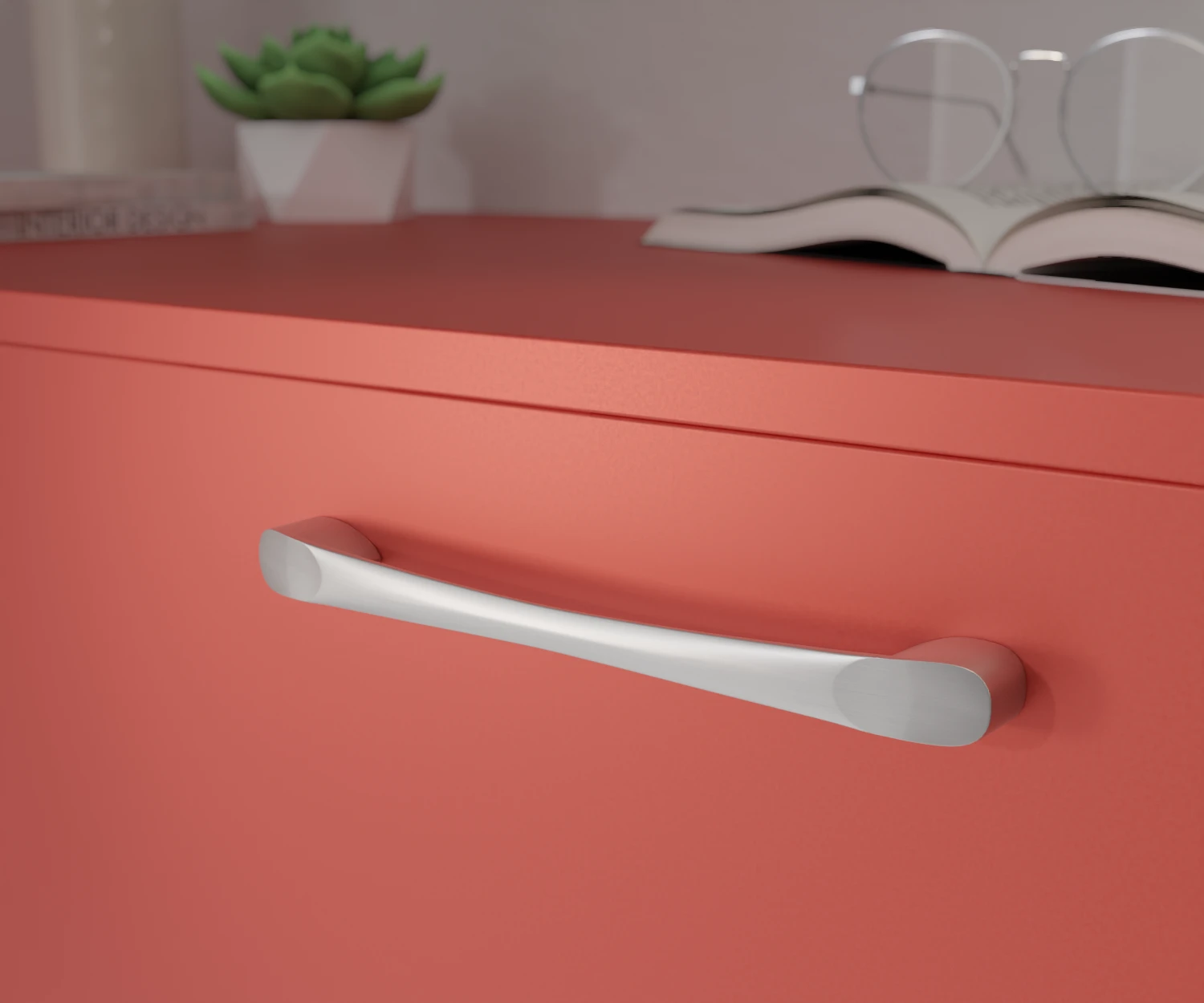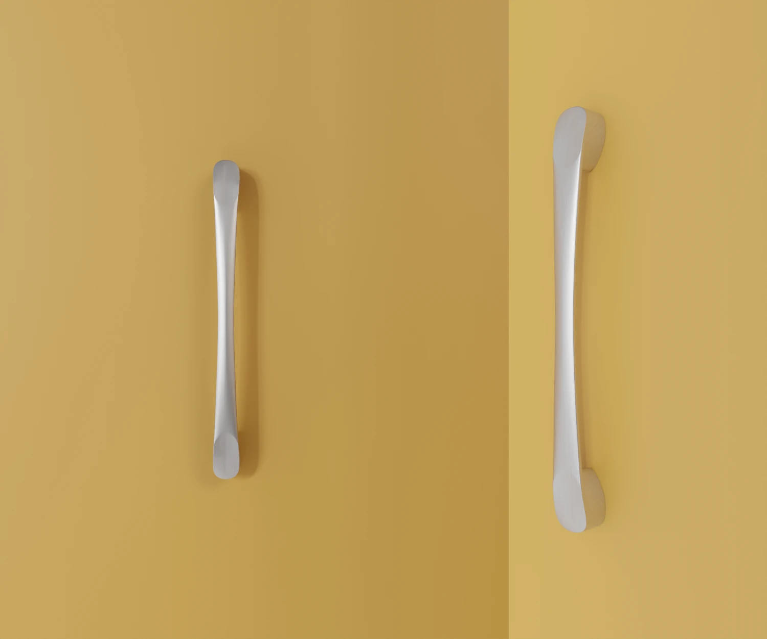 Dieser Griff überzeugt durch seine organisch geschwungene Linie, die an fließende Formen aus der Natur erinnert. Die leicht asymmetrische Silhouette und die weichen Übergänge schaffen ein harmonisches Design, das sich perfekt in moderne wie klassische Möbel integriert. Ergonomisch gestaltet, liegt der Griff besonders angenehm in der Hand – für eine stilvolle Verbindung von Ästhetik und Komfort.