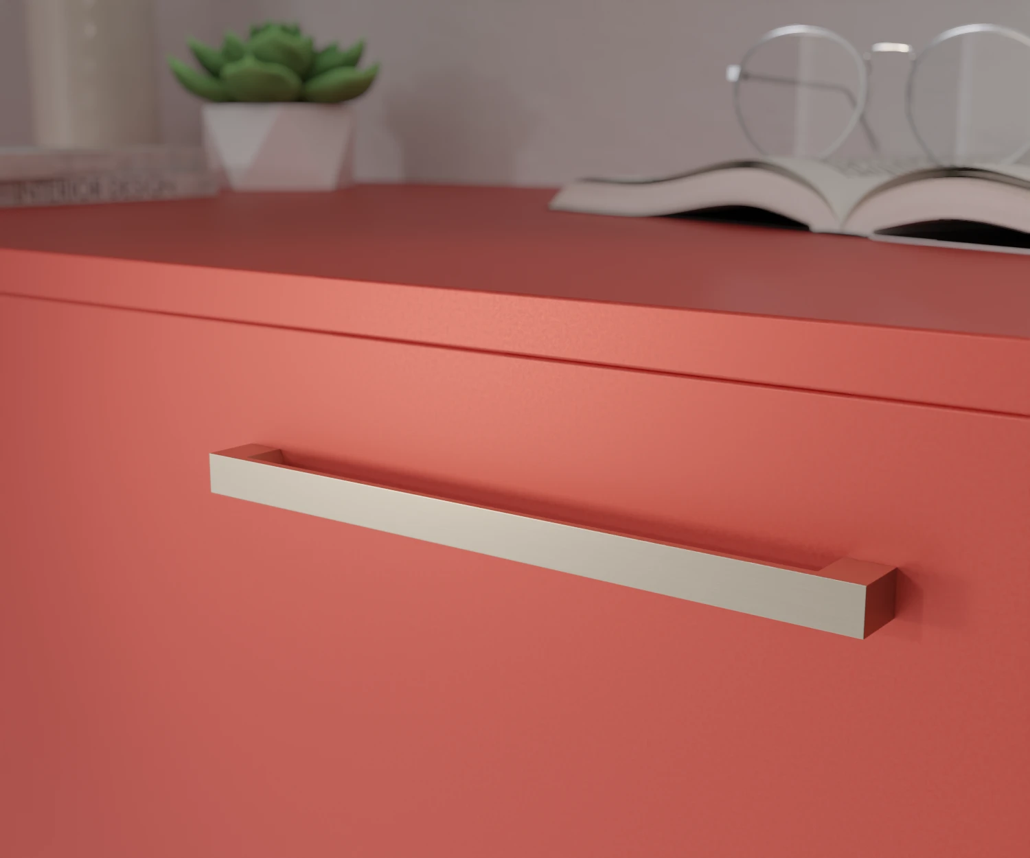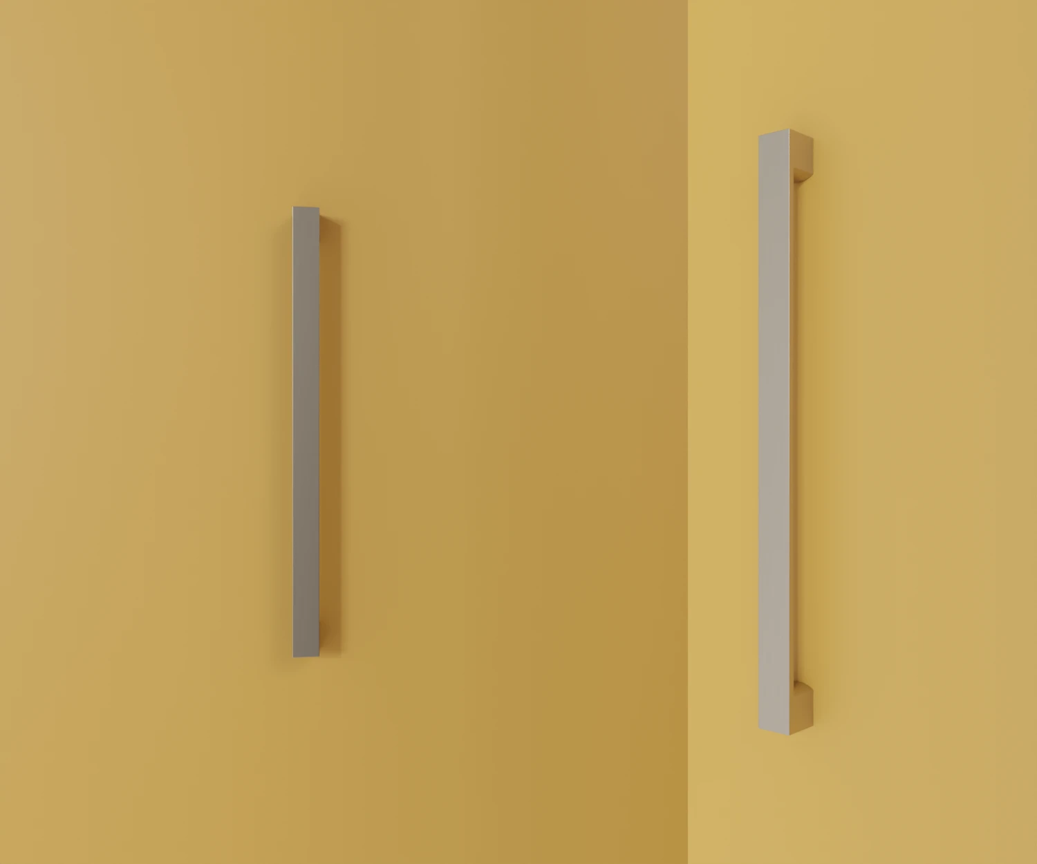 Dieser Griff setzt mit seiner konsequent rechteckigen Form ein starkes Statement in jeder Einrichtung. Die geraden Linien und scharfen Kanten verleihen ihm eine moderne Strenge, die besonders in puristischen Küchen- und Bürodesigns überzeugt. Trotz seiner markanten Optik bietet die breite Auflagefläche ein angenehmes Greifgefühl – ideal für alle, die klares Design und Funktionalität schätzen.