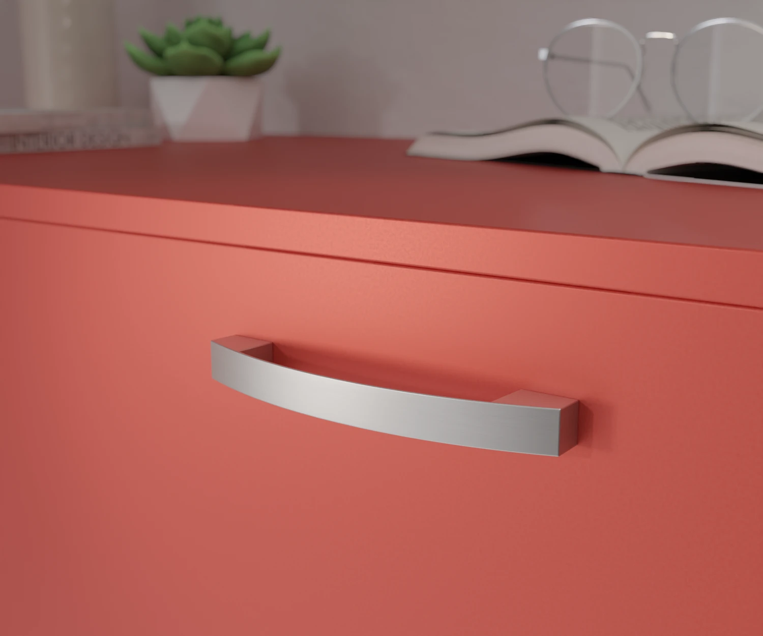 Mit seiner klaren Linienführung und dezenten Rundung vereint dieser Griff moderne Strenge mit ergonomischem Komfort. Die gebogene Form verleiht dem massiven Erscheinungsbild eine elegante Leichtigkeit – ideal für minimalistische Designs mit einem Hauch Raffinesse.