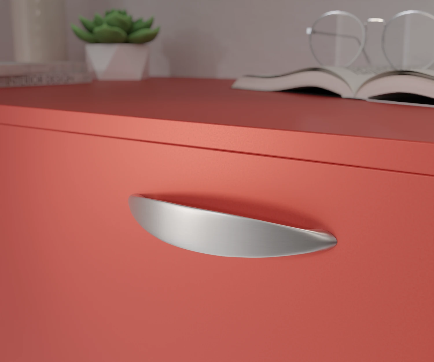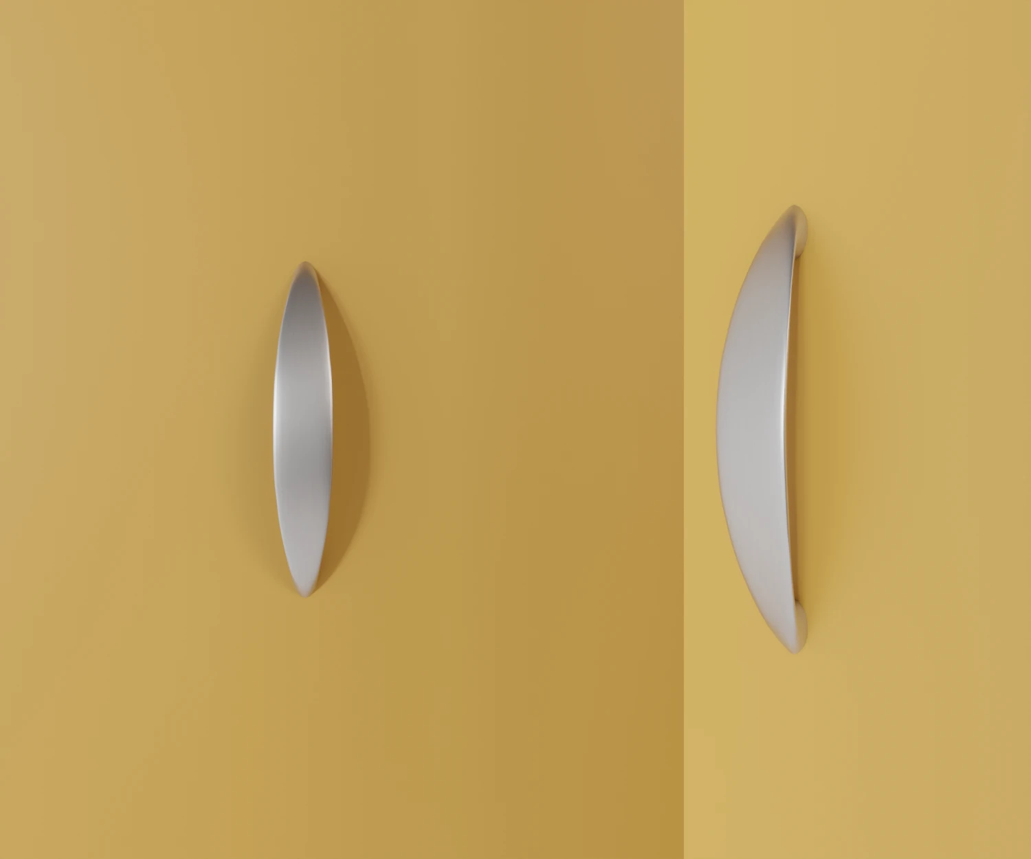 Dieser Griff begeistert mit seiner sanft geschwungenen, fast skulpturalen Form, die wie aus einem Guss wirkt. Die harmonisch verlaufenden Linien erzeugen ein weiches, elegantes Gesamtbild – ideal für designorientierte Räume, die Wert auf subtile Raffinesse und ein angenehmes Griffgefühl legen.