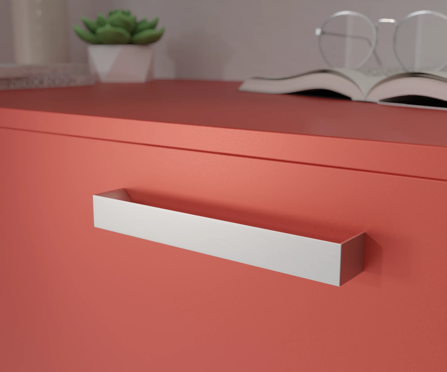 Dieser Griff steht für pure Klarheit: Die flache, rechteckige Frontfläche und die nahtlos integrierten Seiten erzeugen eine markante, architektonische Anmutung. Perfekt für puristische Möbelkonzepte und moderne Küchen, in denen reduziertes Design und klare Linien im Fokus stehen.