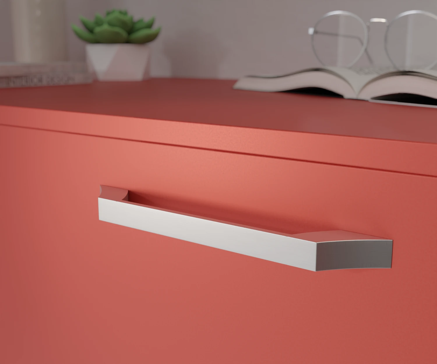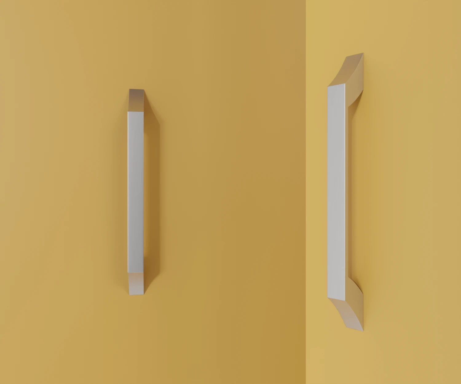Mit seinem scharfkantigen, modernen Design setzt dieser Griff ein kraftvolles Statement. Die leicht nach innen gewölbte Unterseite sorgt für eine angenehme Griffigkeit, während die klaren Kanten und schrägen Enden ihm eine architektonische, fast skulpturale Wirkung verleihen. Ideal für puristische Möbel mit Anspruch auf Charakter und Klarheit.