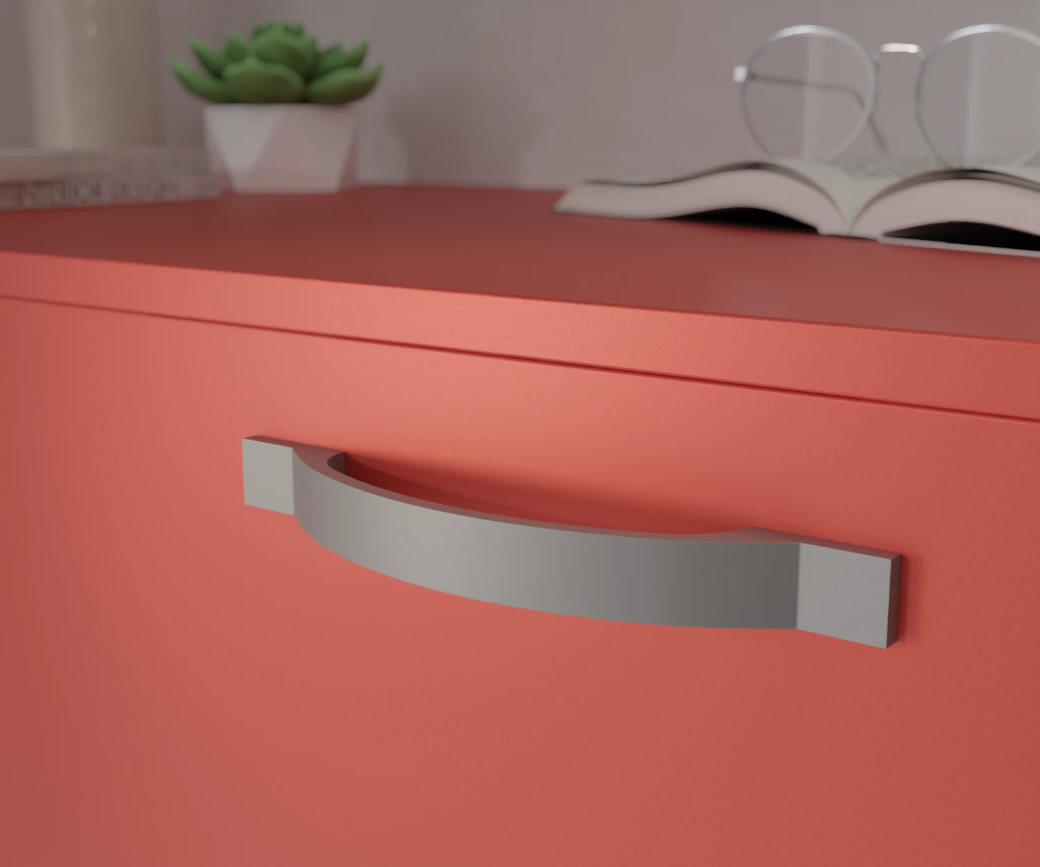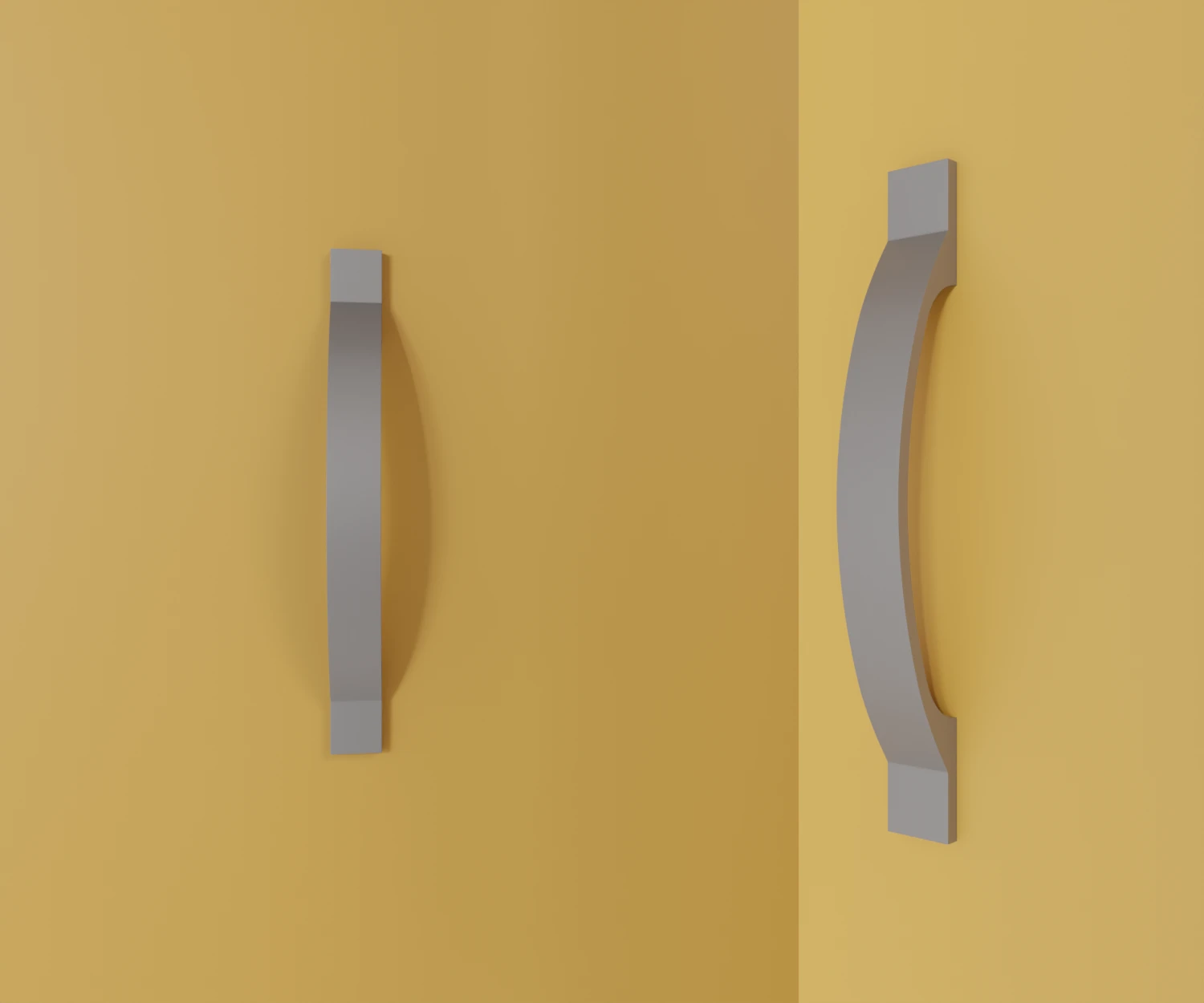Dieser Griff besticht durch seine harmonisch gebogene Form und die breiten, kantigen Auflageflächen. Die Kombination aus sanfter Rundung und klaren Kanten verleiht ihm eine edle Balance zwischen Moderne und Klassik. Perfekt für hochwertige Möbel, die ein stilvolles, dezentes Designhighlight vertragen.
