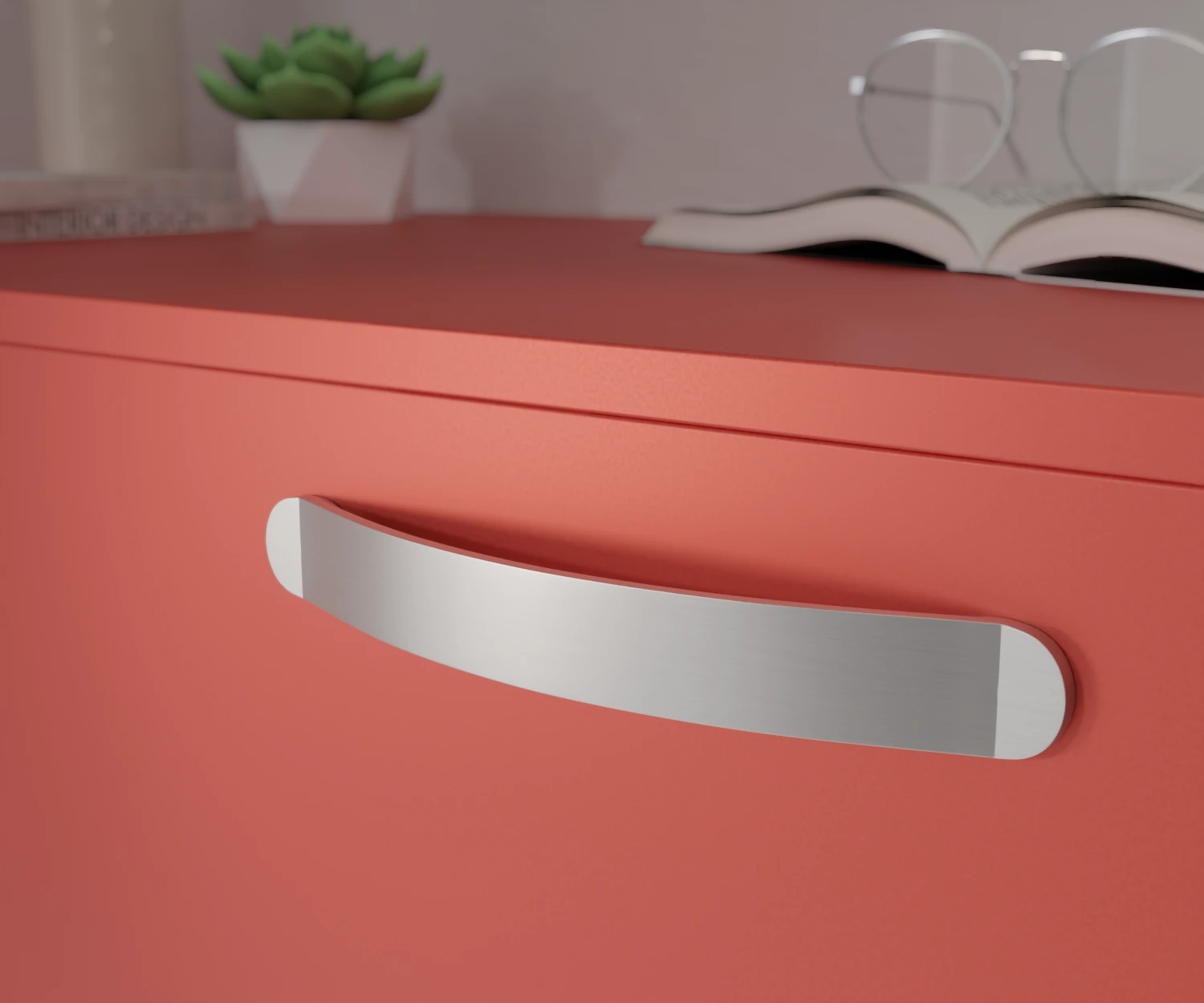 Dieser Griff verbindet weiche Linienführung mit einem modernen Look. Die leicht gebogene Front sorgt für eine angenehme Ergonomie, während die abgerundeten Endstücke dem Design eine harmonische Note verleihen. Perfekt geeignet für Möbel, die eine dezente und zugleich elegante Akzentuierung verlangen.