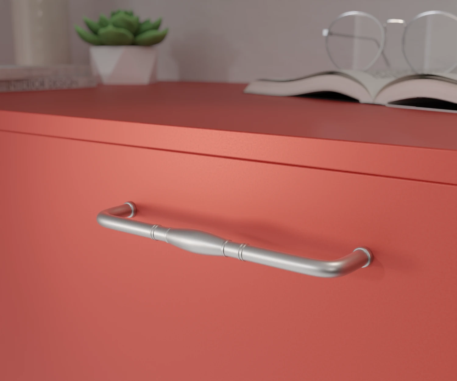 Dieser elegante Möbelgriff besticht durch seine klassische Form mit sanft abgerundeten Enden und einem dezent taillierten Mittelstück. Die geschwungene Linie verleiht dem Griff einen Hauch von Nostalgie, während die matte Metalloberfläche für eine moderne Note sorgt. Ideal für stilvolle Einrichtungen mit traditionellem oder zeitlosem Charakter.