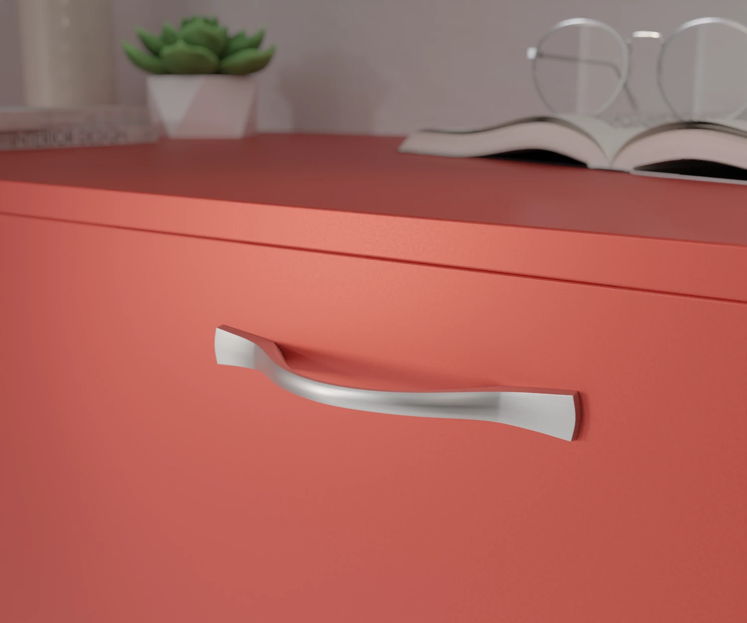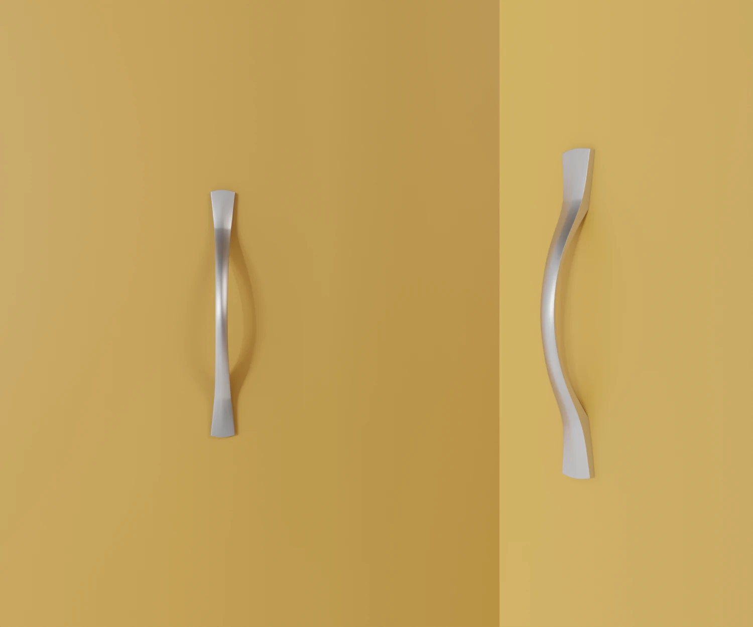 Dieser Griff besticht durch seine weich fließende Form, die an die Natur erinnert. Die harmonische Wölbung liegt angenehm in der Hand und verleiht Möbeln eine dezente Dynamik. Ideal für stilvolle Wohnräume mit einem Fokus auf sanfte Übergänge und elegantes Design.