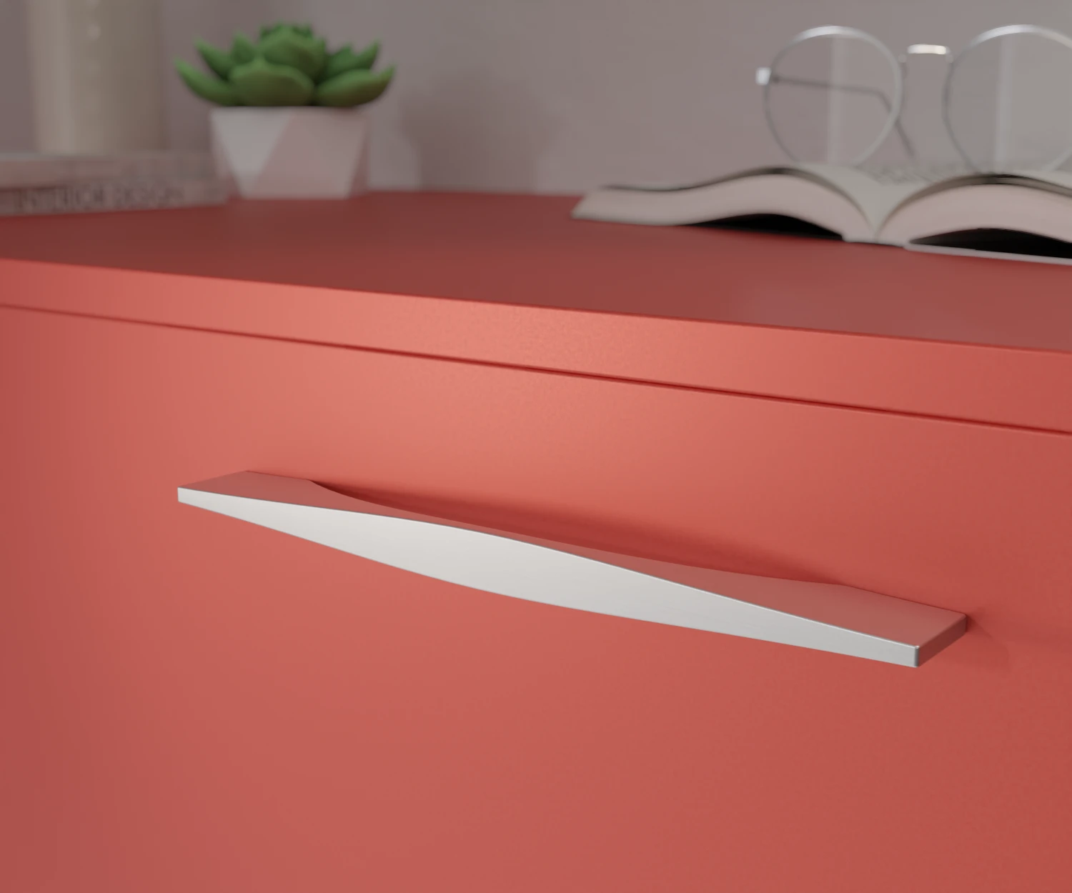 Dieser elegant geschwungene Griff überzeugt durch seine fließende Linienführung und die markante Aussparung, die für eine moderne Leichtigkeit sorgt. Ideal für stilbewusste Möbel mit einem Hauch von Design-Avantgarde.