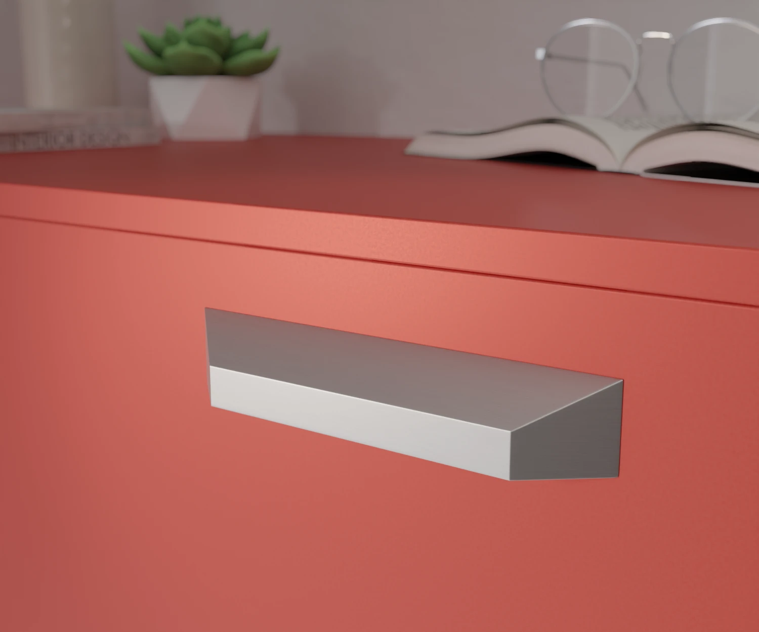 Dieser Griff überzeugt mit seiner markanten, abgeschrägten Frontfläche und setzt ein modernes Statement mit architektonischem Anspruch. Perfekt für puristische Raumkonzepte mit Anspruch an Form und Funktion.