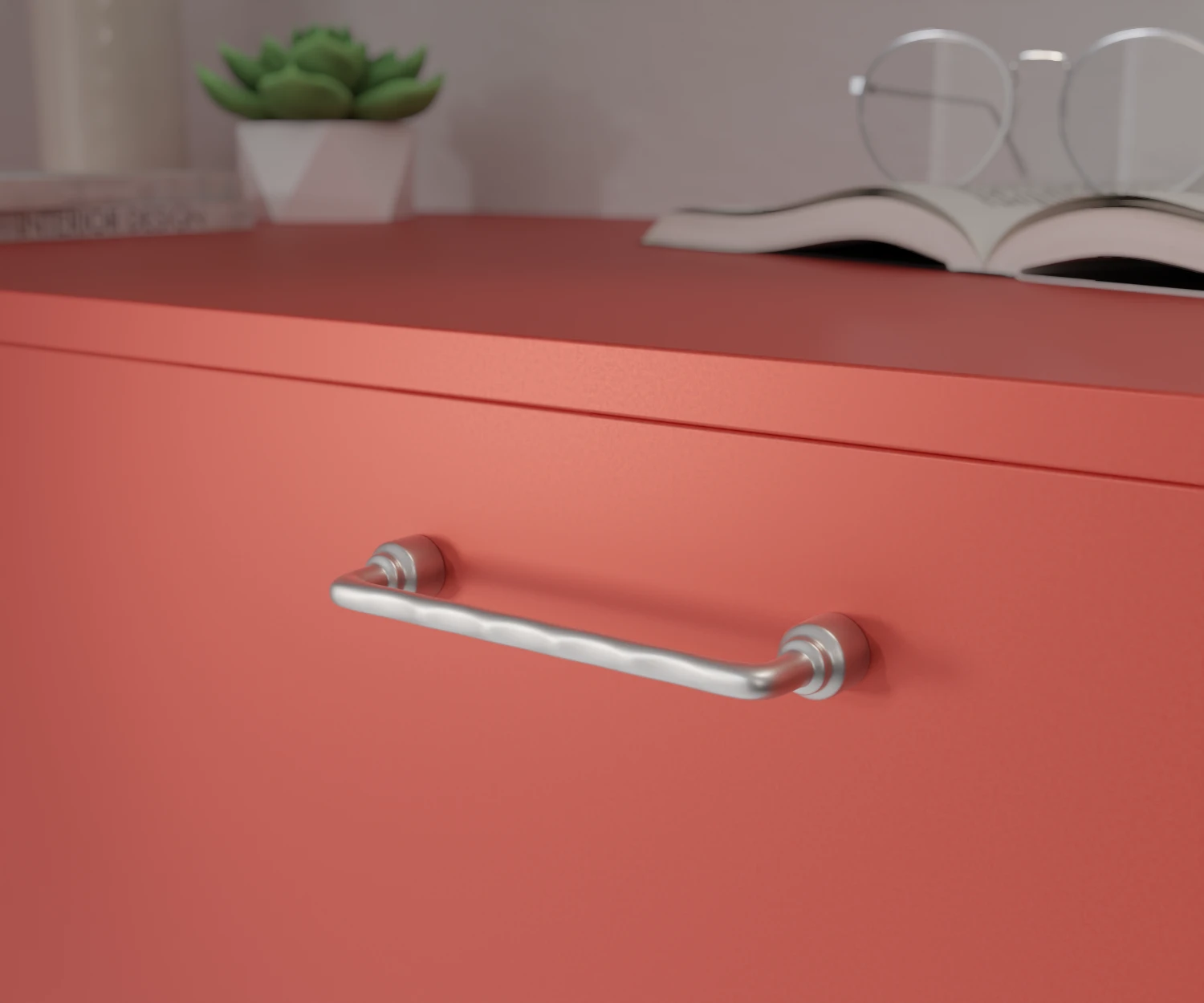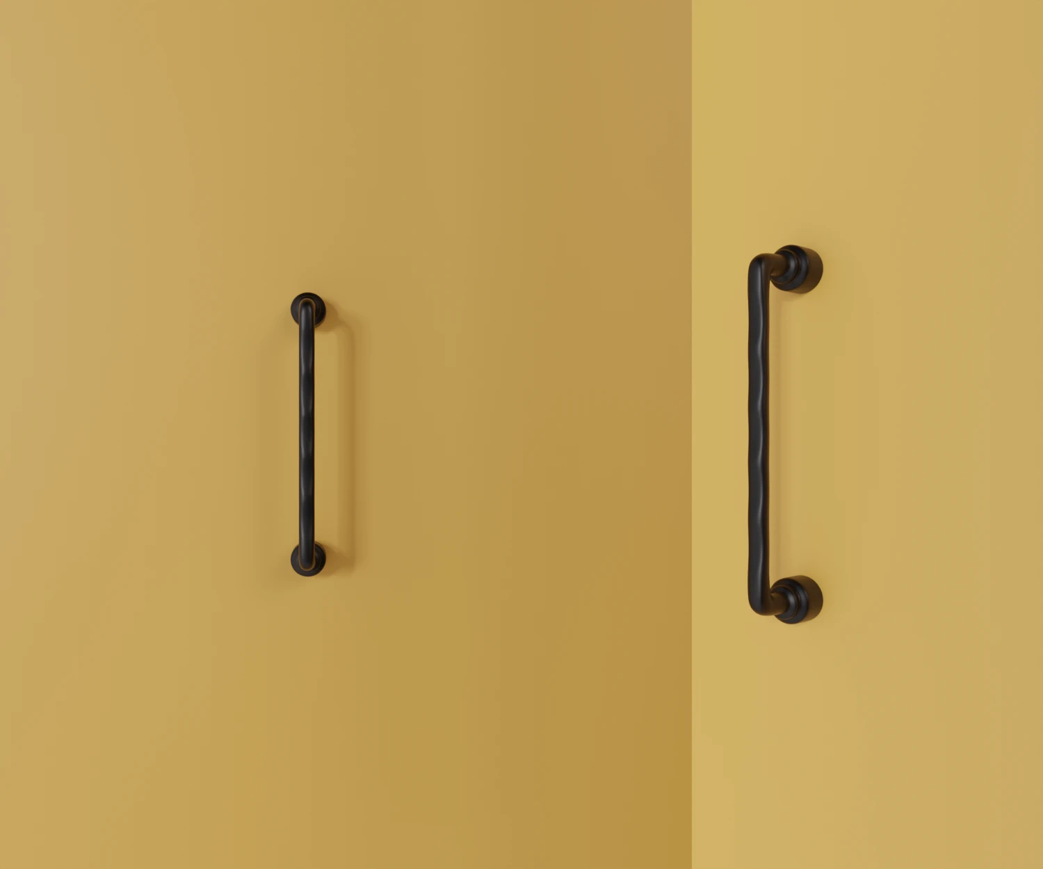 Dieser Griff verbindet traditionelle Elemente mit einem charmanten Design. Die fein strukturierten Rundungen im Griffbereich sorgen für eine angenehme Haptik, während die detailreich ausgeformten Endstücke an klassische Türbeschläge erinnern. Ideal für stilvolle Möbel mit nostalgischem Touch oder Landhausflair.