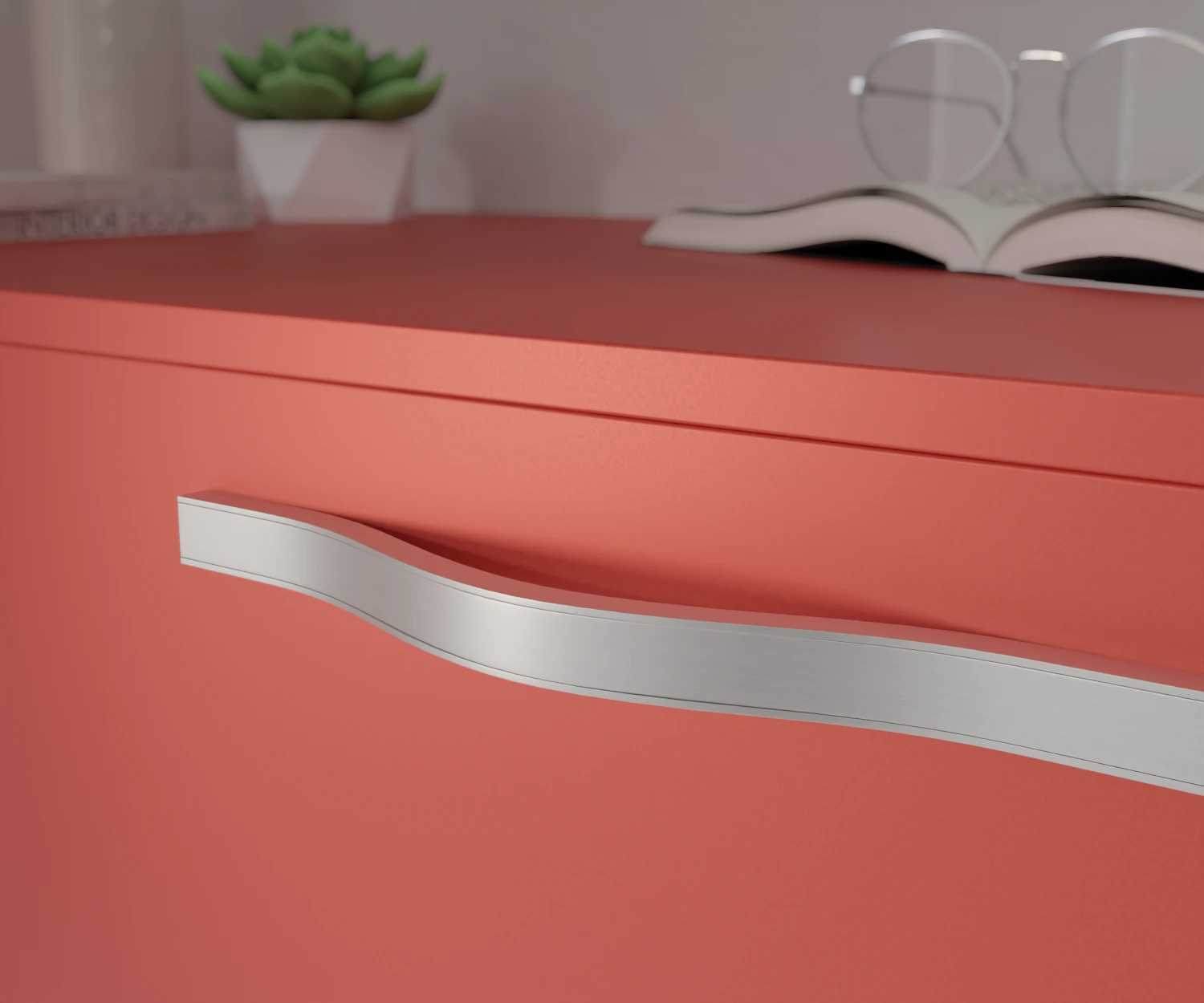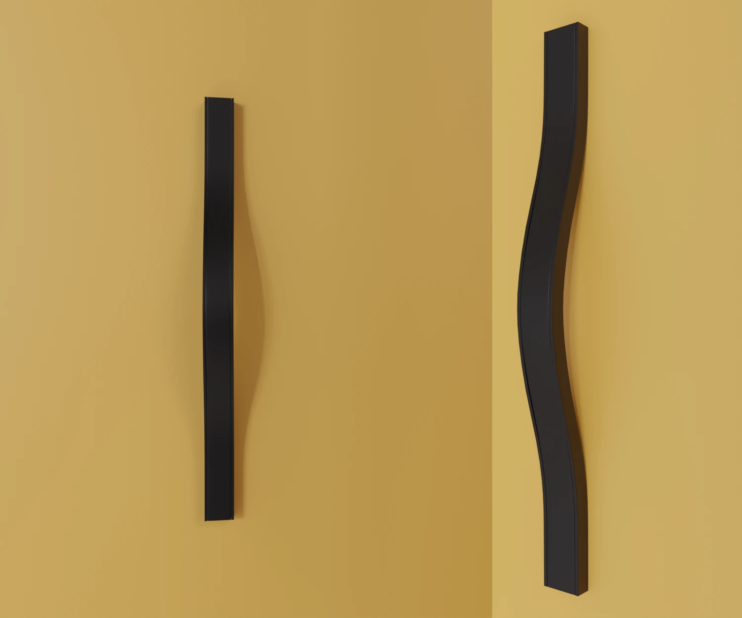 Mit seiner sanften Wellenform bringt dieser Griff eine organische Leichtigkeit ins Möbeldesign. Die geschwungene Linie wirkt wie ein ruhiger Fluss – ideal für alle, die ihrem Interieur eine elegante und unverwechselbare Note verleihen möchten.
