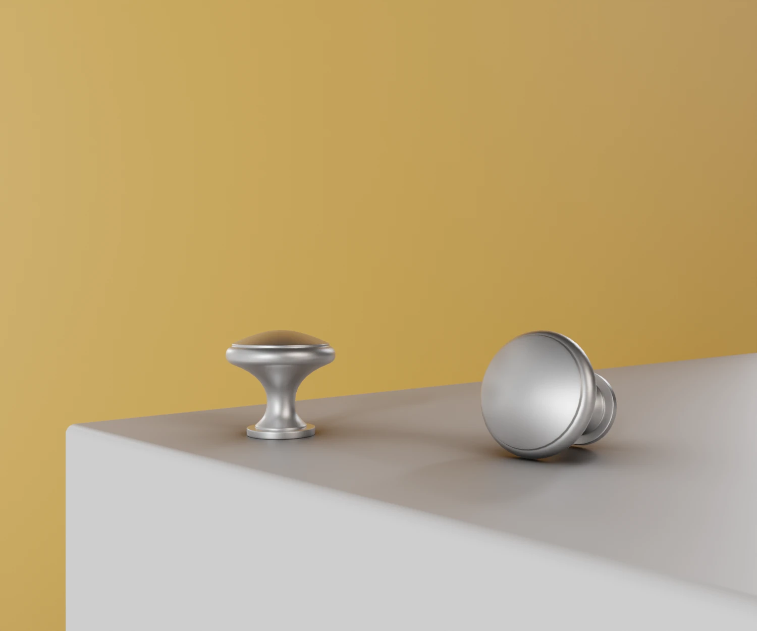 Dieser elegante Möbelknopf verbindet klassische Konturen mit feiner Detailarbeit. Die dezent abgestufte Fläche auf der Oberseite verleiht ihm einen Hauch von Raffinesse – ideal für alle, die das Besondere im Gewohnten suchen. Ein stilvoller Akzent für moderne wie traditionelle Möbelstücke.