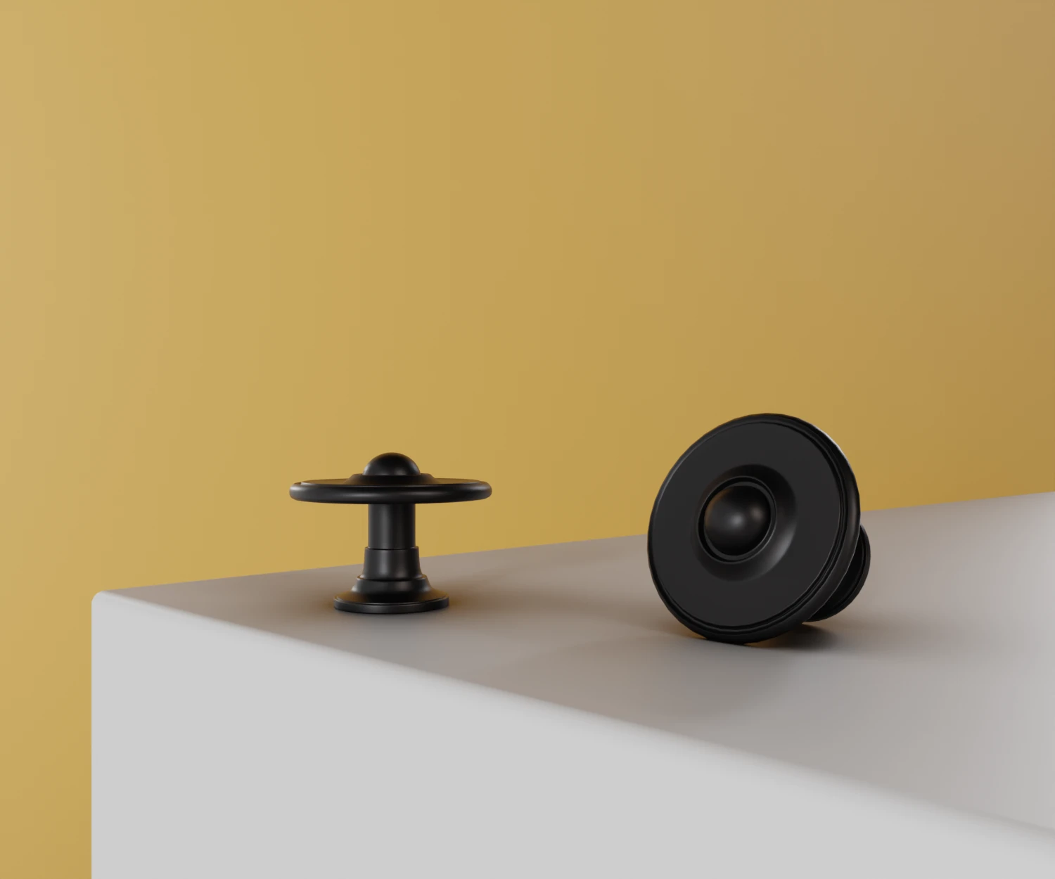 Mit seinem kunstvoll gestuften Aufbau und der sanft gewölbten Mitte bringt dieser Möbelknopf nostalgischen Charme in jeden Raum. Ideal für klassische Einrichtungskonzepte, verleiht er Schubladen und Türen eine stilvolle Note – wie ein kleines Schmuckstück fürs Möbelstück.